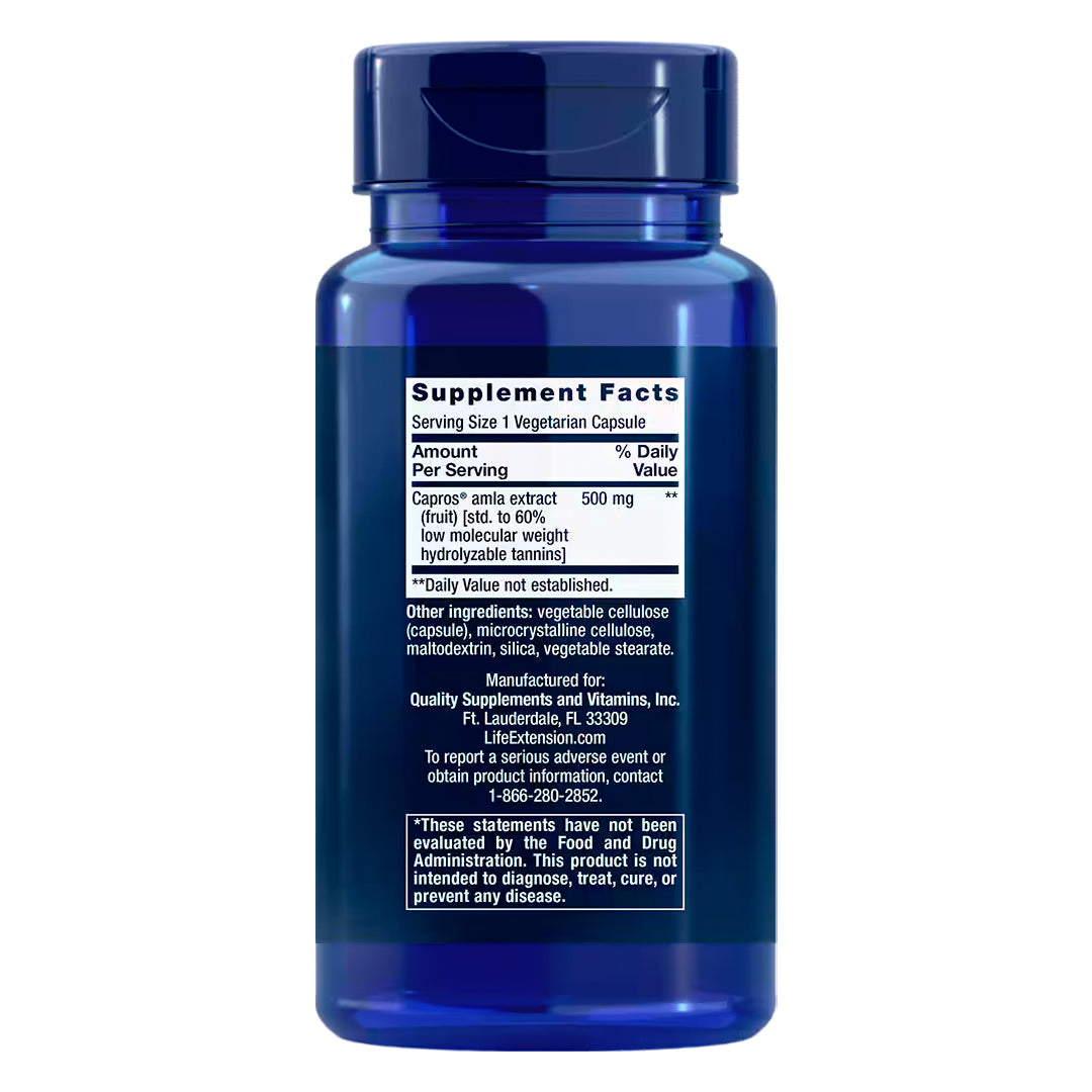Capros® extracto acuoso de amla (fruta) [estandarizado al 60 % de taninos hidrolizables] | 500 mg |